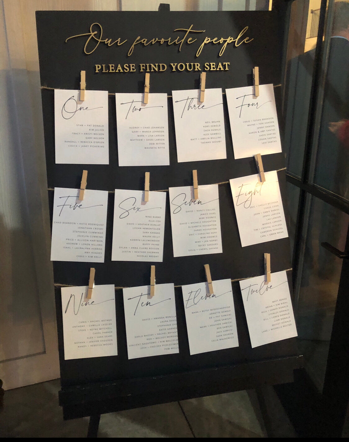 Seating chart boards with clips and easels - choice of white or black