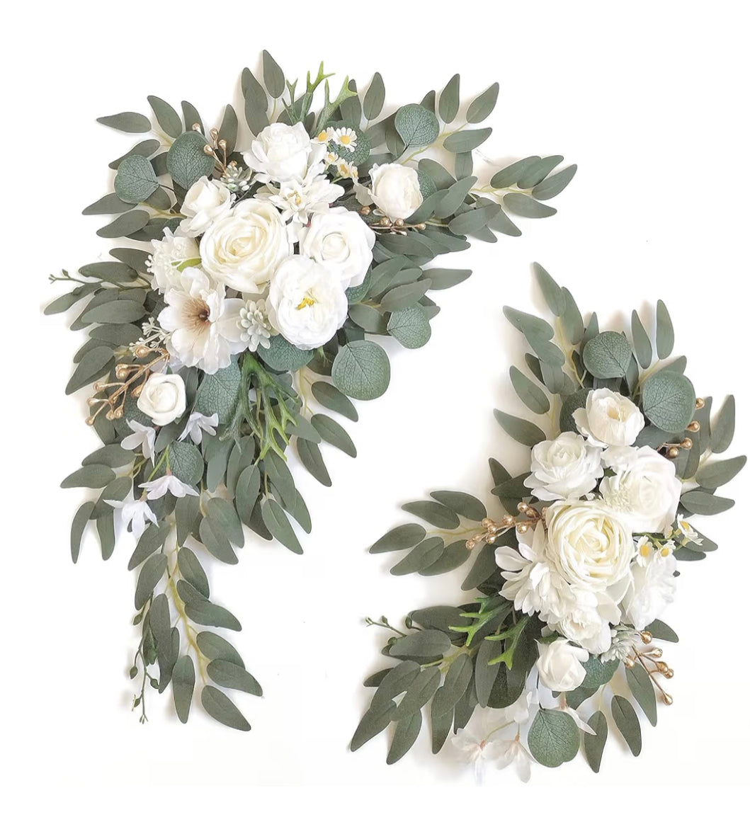 2 White Faux Floral Pieces for Welcome and/or Seating Chart Board